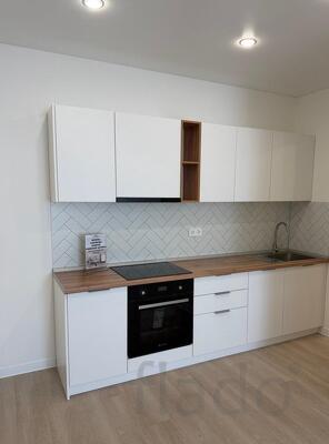 - В ПОДАРОК в квартире сразу будет установлен кухонный гарнитур с встроенной техникой: духовой шкаф, вытяжка, стиральная машина