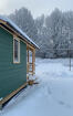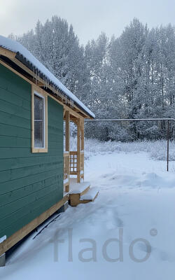 И небольшая деревянная и очень симпатичная бытовка. Сможете на веранде пить кофе и наблюдать за стройкой вашего домика) А потом оборудовать его под гостевой или садовый домик, или баньку.